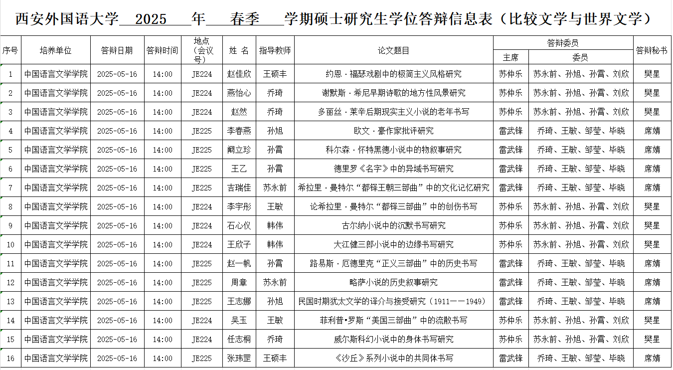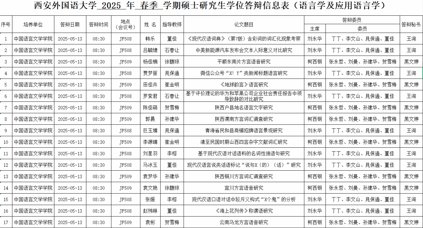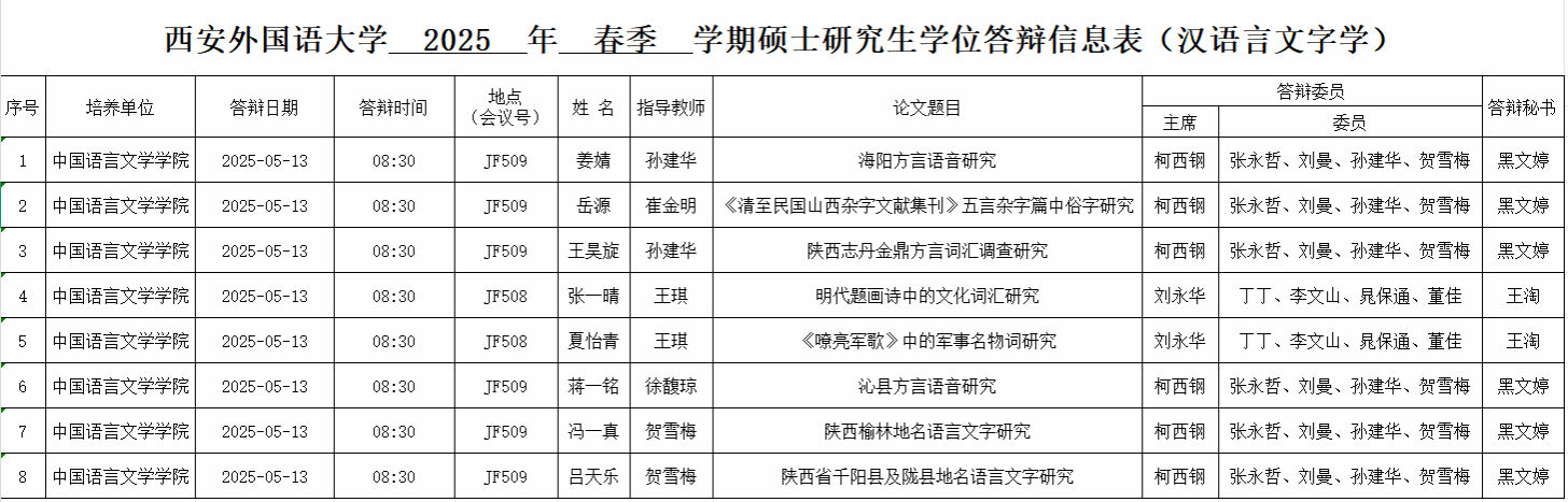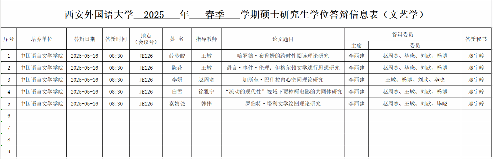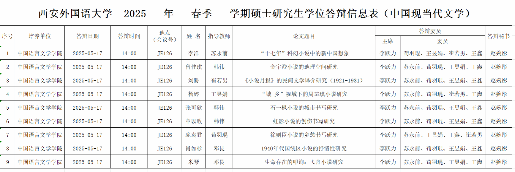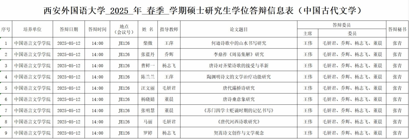 av大平台 2025年春季学期硕士研究生学位答辩预告(第二批)