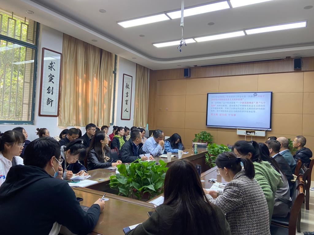 2021年10月13日,中国语言文学学院党委在JE126会议室召开学院教职工政治理论学习会。本次会议特邀我校马克思主义学院副教授廖敏做专题辅导报告。学院全体教职工参加会议,会议由党委书记王刚主持。