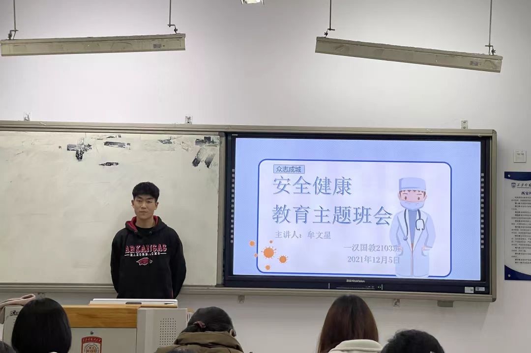 本次班会由各班班长及生活委员主持。各班精心设计、认真策划,运用丰富翔实的案例为同学们普及了禁毒防艾知识并号召大家自觉提高毒品防范意识,树立洁身自好的生活观念;同时,各班主持人依托专题讲解、视频学习、交流讨论等多种形式,系统全面讲解了秋冬季出血热及其他传染疾病、常见流感的相关症状、传播途径与预防措施,提醒同学们在日常生活中养成良好卫生习惯,做好冬季传染病预防。结合当前国内疫情形势,各班主持人也面向全体参会同学就防疫具体注意事项、个人科学防护指南、新冠疫苗接种动员等方面进行了教育宣传,号召大家自觉服从防疫大局,严格落实防疫要求。