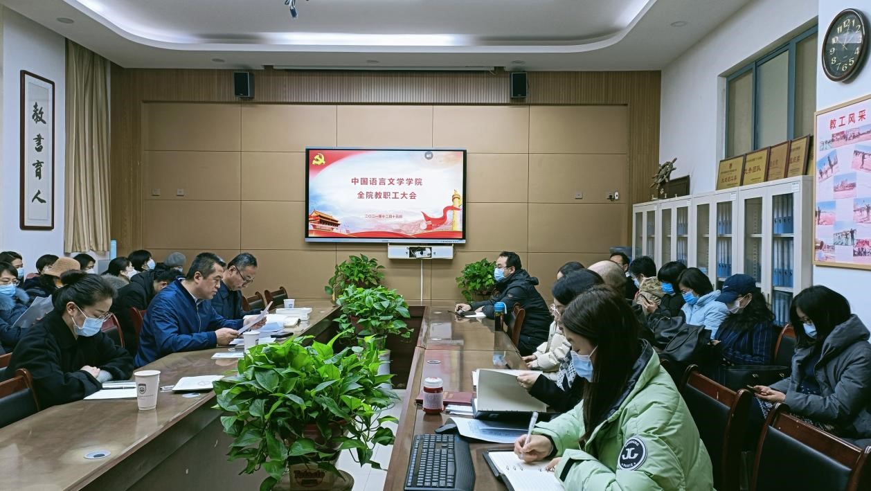 召开全体教职工大会。会议由院长韩伟主持,学院党政领导及全体教职工参会。