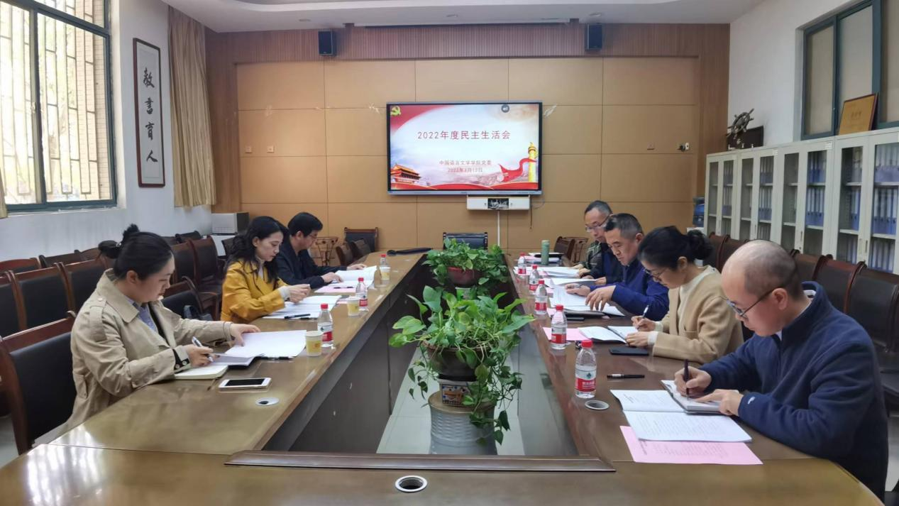 在JE126会议室召开2022年度民主生活会。校党委副书记马洁、督导组成员郑锐华、陈洁到会督导,学院领导班子全体成员参会,会议由学院党委书记王刚主持。