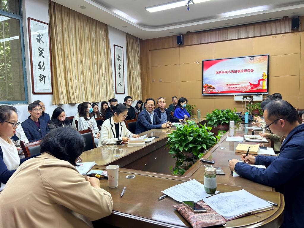 会议伊始,党委委员孙霄和苏永前领学《习近平著作选读》第二卷《培养德智体美劳全面发展的社会主义建设者和接班人》篇目。随后进行张新科同志先进事迹报告会。杨晓斌教授以朴实的语言、真挚的情感和详实的案例生动讲述了张新科同志在平凡岗位上做出不凡业绩的先进事迹,展示了张新科同志“心怀大我、潜心治学”的爱国报国情怀、“情系学生、甘为人梯”的敬业奉献精神和“追求卓越、顽强拼搏”的创新进取品格,生动诠释了新时代教师的使命与担当。随后学院教师汪雯雯和李月辰作交流发言,她们深情回顾了在博士求学期间张新科老师为学、为事、为人的感人故事,并表示张新科老师高尚的人格境界和坚韧不拔的精神诠释了“大先生”的深刻内涵,是我们学习的榜样。大家一致表示要认真学习张新科同志严谨治学、潜心育人的工作作风和扎根西部、甘于奉献的敬业精神,坚守教育初心,践行育人使命,培养堪当民族复兴大任的时代新人。