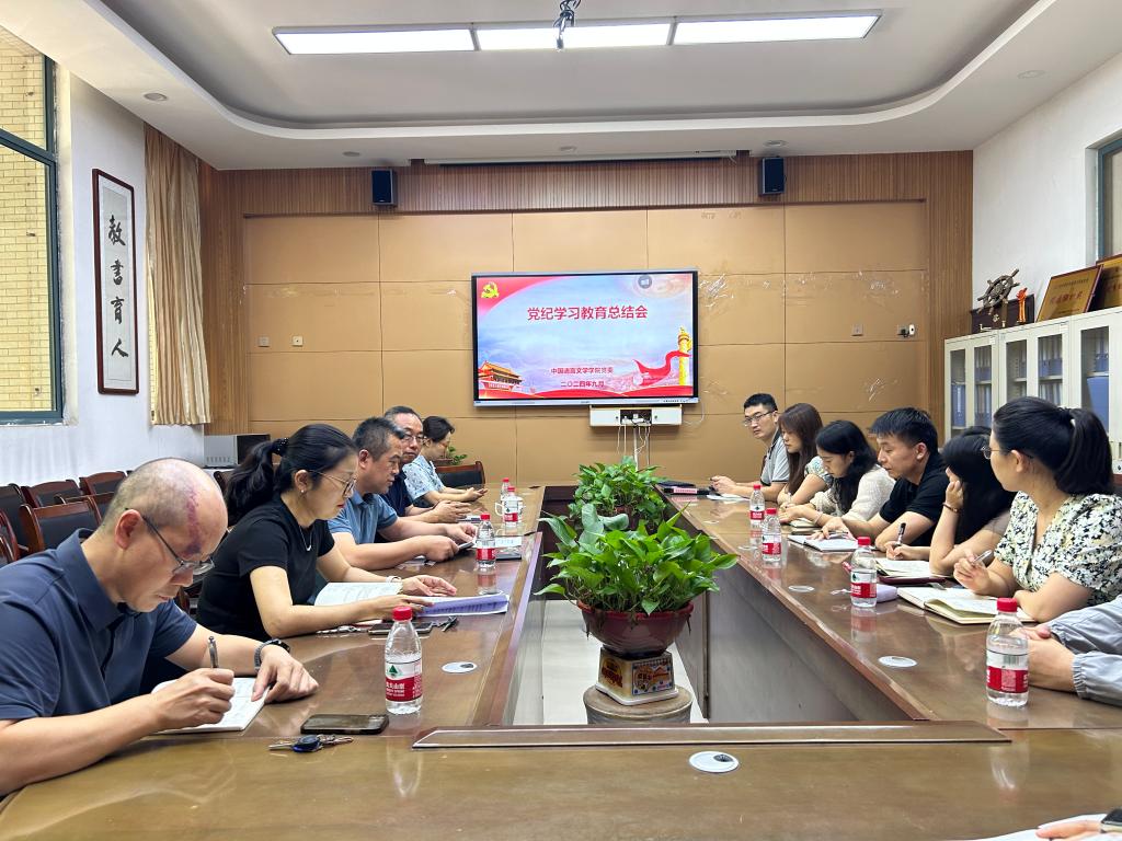 在会议室JE126举办党纪学习教育总结会。学院领导班子成员、党委委员和各党支部书记参会,会议由学院党委书记王刚主持。