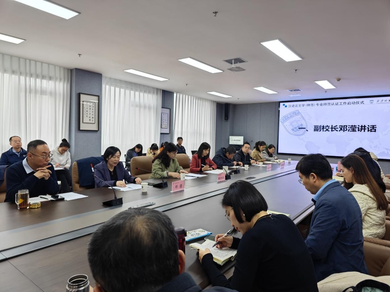 为全面提升我校师范教育教学质量,2025年10月29日下午,学校在长安校区启智楼1003会议室举行了汉语言文学(师范)专业师范认证工作启动仪式暨专题培训会。副校长邓滢出席会议,师范类专业建设和认证工作领导小组成员单位负责人,教育学院、俄语学院有关人员及中文学院全体教职工参加会议,会议由av大平台