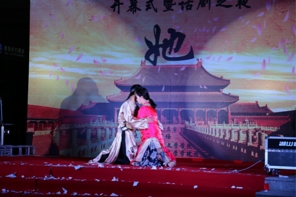 2014级杨乔良,米含笑等8位同学共同出演。话剧在满清与现代的戏里戏外,讲述了两出爱情故事,强调女性在爱情中从来不该是软弱卑微的附属品,表现了女性的顿悟与救赎。演员们精彩的对白、投入的表演使整场演出高潮迭起,现场气氛热烈,掌声不断。活动延续了往届的微博互动环节以及“最受欢迎的演员”评选活动,充分调动了现场气氛,成为活动的亮点。