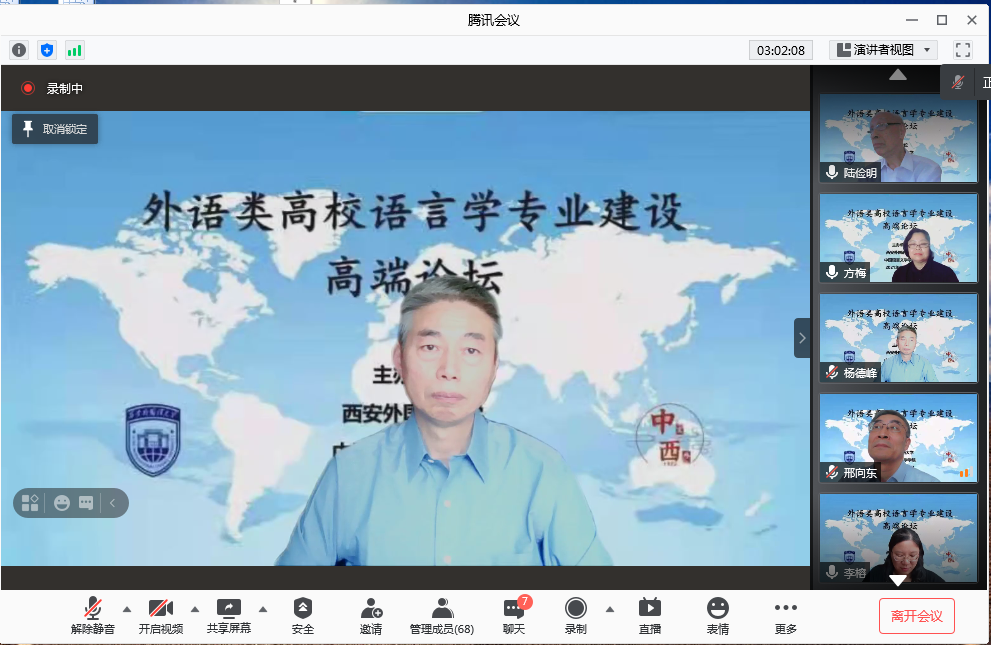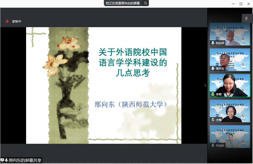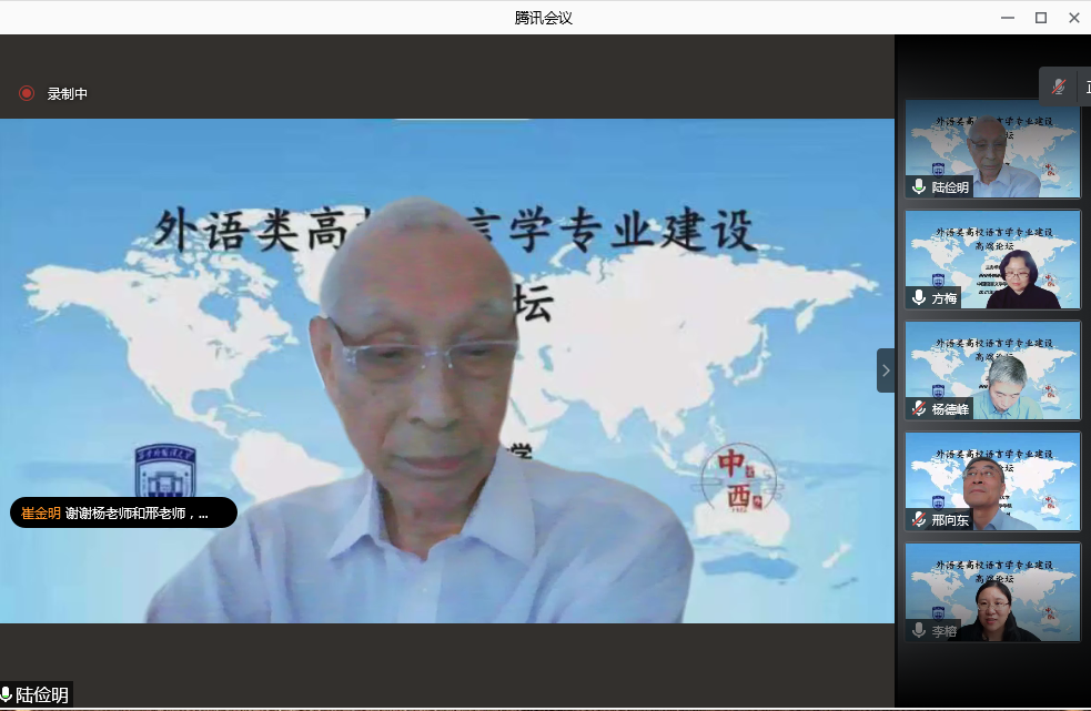 举办线上“外语类高校语言学专业建设高端论坛”。本次论坛邀请北京大学中文系教授陆俭明、中国社会科学院语言研究所研究员方梅、陕西师范大学文学院教授邢向东、北京大学对外汉语教育学院教授杨德峰出席论坛。av大平台