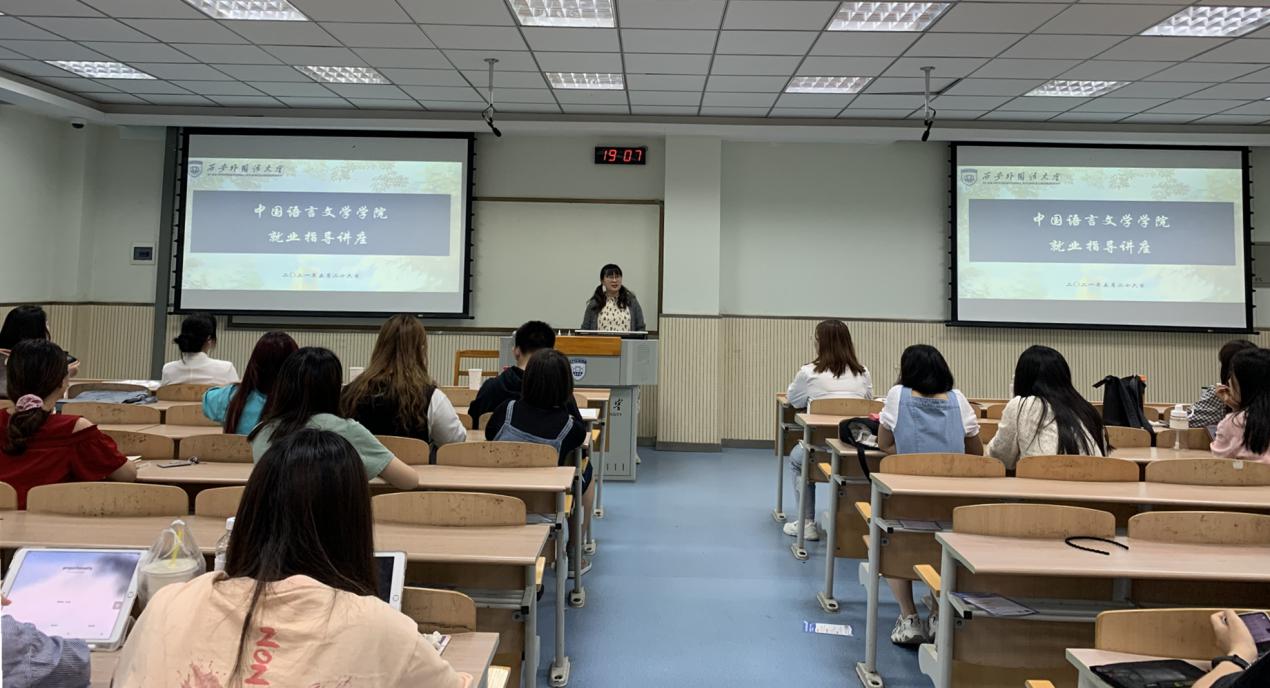 在SC212教室举办汉语国际教育专业就业指导讲座。本次讲座邀请西安思想家语言培训学校创始人李盼盼老师主讲,讲座由av大平台