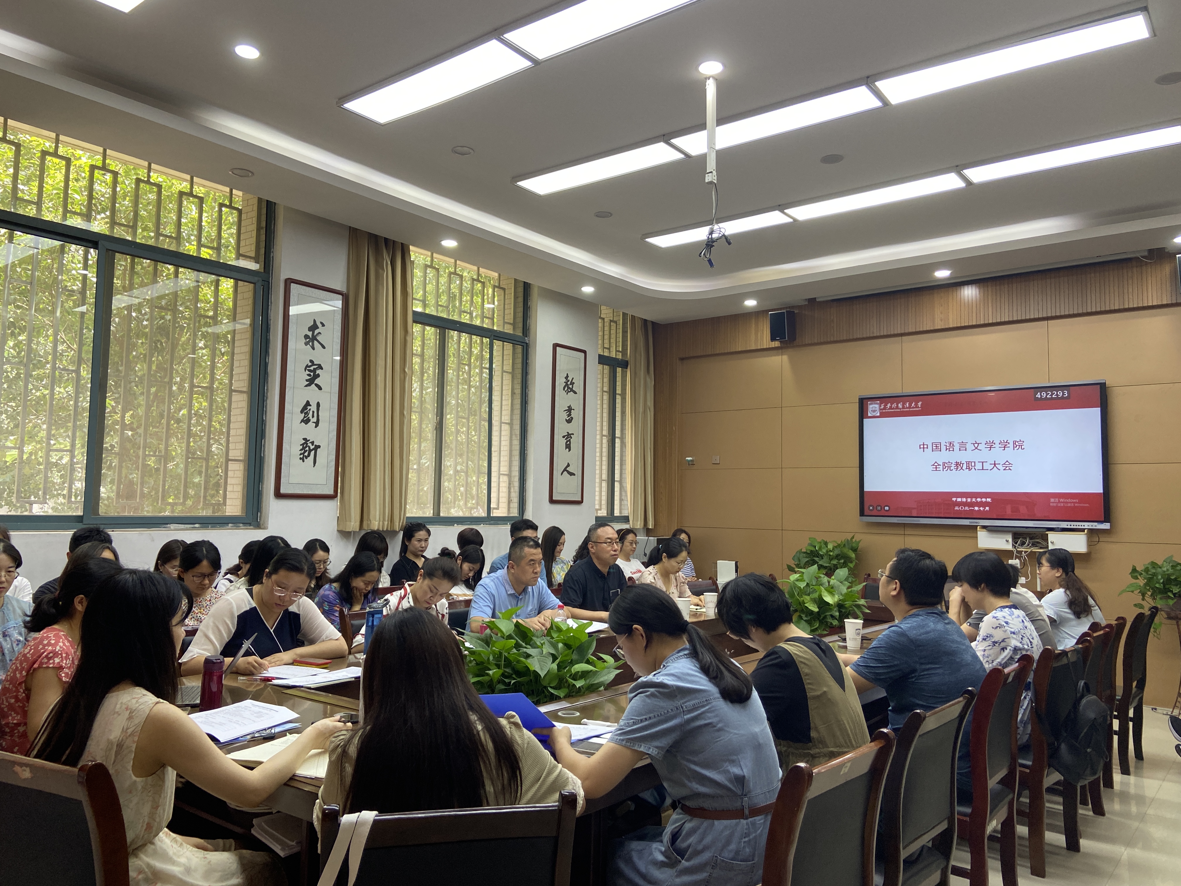 于会议室JE126召开了全院教职工大会,学院党政领导及全体教职工参会。会议由党委书记王刚主持。