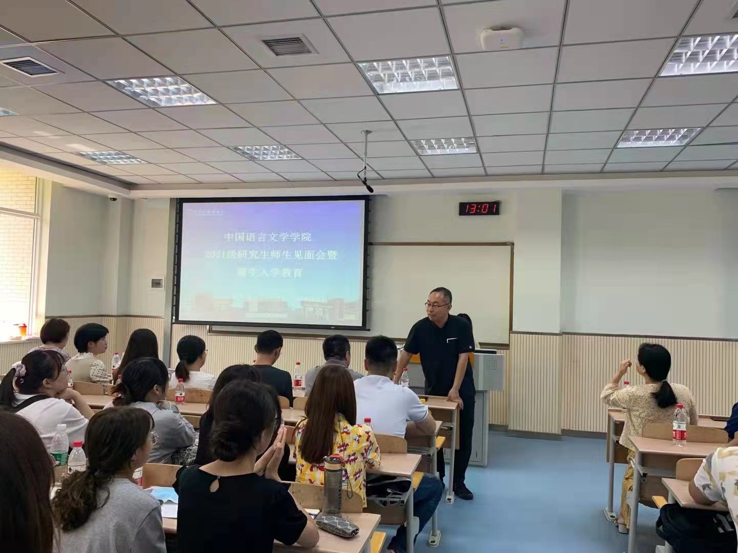 在SC212举办2021级硕士研究生师生见面会。院长韩伟,院党委书记王刚,副院长董佳,各硕士生导师,研究生教学秘书孔维肖,2021级研究生辅导员王瑞以及2021级全体研究生参与本次会议。会议由副院长董佳主持。
