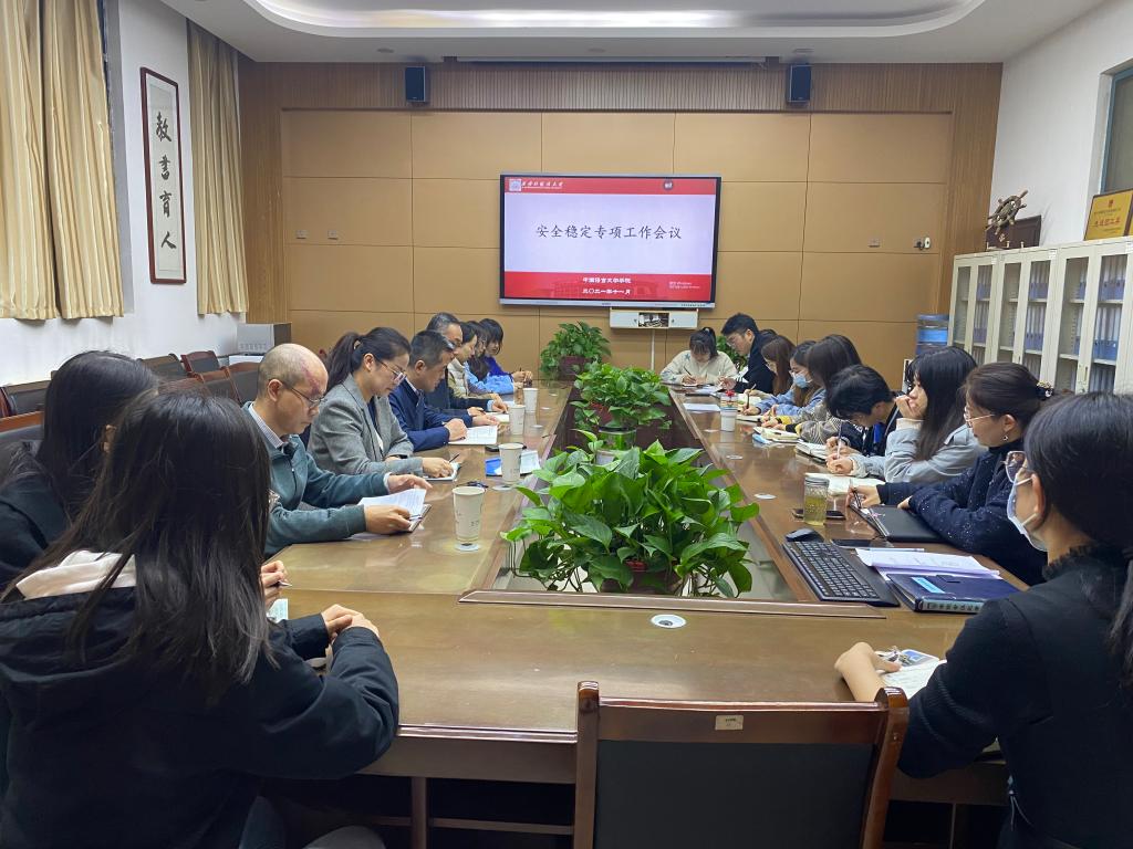 在JE126会议室召开安全稳定专项工作会议,贯彻落实省委教育工委、省教育厅校园安全专项整顿会议及学校安全稳定工作会议精神,安排部署学院安全稳定专项工作。会议由党委书记王刚主持。