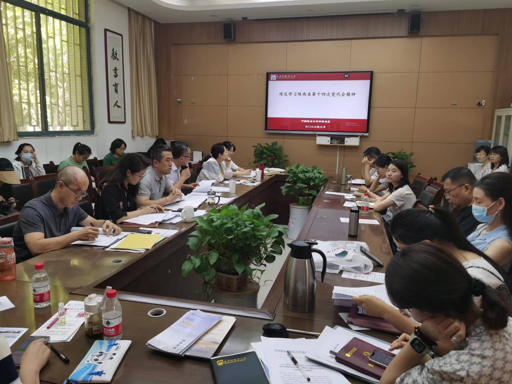 会上,王瑞领学了《牢记嘱托感恩奋进解放思想改革创新再接再厉谱写陕西高质量发展新篇章》,大家一致表示要聚焦省第十四次党代会提出的奋斗目标、总体要求和主要任务,认真履行好教书育人、育人为本的工作职责,积极贯彻新发展理念,激发干事创业的精气神,推动学院事业高质量发展。随后王丹传达了关于讲座、论坛和报告会等审批流程的说明,并指出大家要按要求做好讲座等申请审批程序。王刚通报了几起十九大以来陕西省高校违纪违法典型案例,大家一致表示要以反面典型为警醒,深刻反思、引以为戒,自觉筑牢师德师风防线,做到以德立身、以德立学、以德施教。