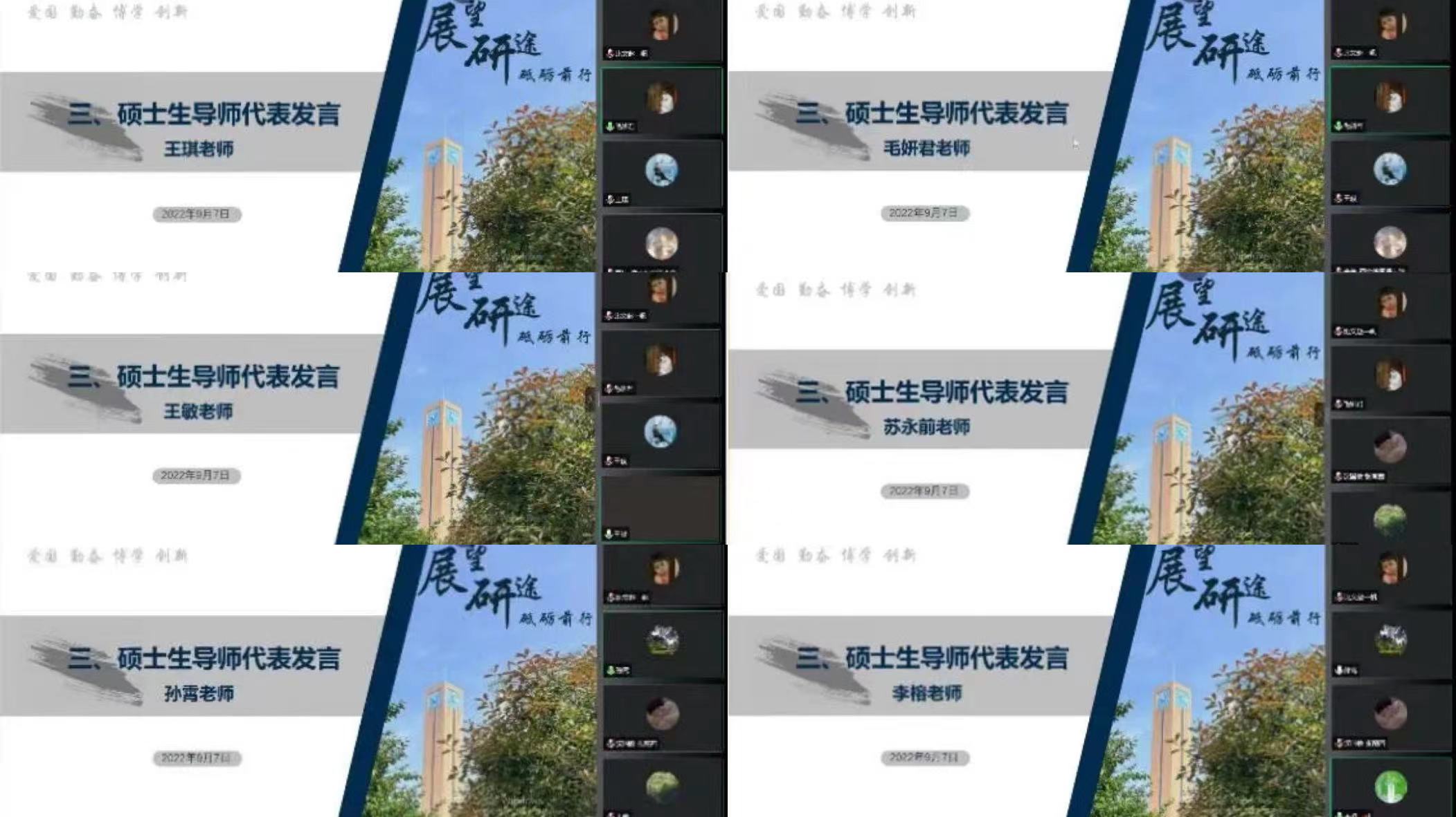 硕士生导师王琪、毛妍君、王敏、苏永前、孙霄、李榕等六位教师代表帮助硕士新生了解研究生学习模式和学科发展动态,分别从学科特点、专业要求、研究方法、毕业论文选题写作等方面详细介绍了各自专业领域中的重难点问题,对培养新生专业思维能力,构建和谐导学关系,形成良好学术氛围起到了关键的作用。老师们一致表示,希望大家能尽早尽快适应研究生角色转变,调整身心状态,加强自主学习,学会独立思考,注重实践摸索,同时要注意加强学术交流,在思维碰撞中不断培养科研创新能力。