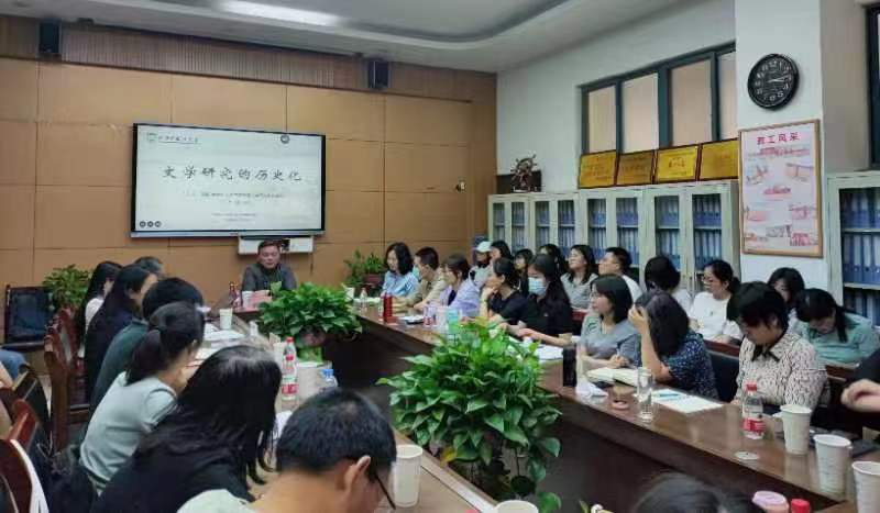 讲座中,梁展研究员指出“历史化”为当前文学批评和文学研究的明显趋势之一。文学研究需要“语境化”,即将文本置入特定历史时期所造就的文学场域、政治场域、经济场域等中。借助“镜子”“絮语”“消亡”“僭越”等文化概念,梁展研究员表明,文学研究者应关注异质场域下文本的美学、社会、政治、经济等功能。针对文学艺术作品与世界、历史的辩证关系,梁展研究员认为文学是世界和历史的创造性达成渠道,并通过世界生成的“瞬间”进入历史。梁展研究员同时就“历史化”与师生展开交流,主要针对“新历史主义”“共同体”“科幻文学”等应用方向进行了进一步辨析。