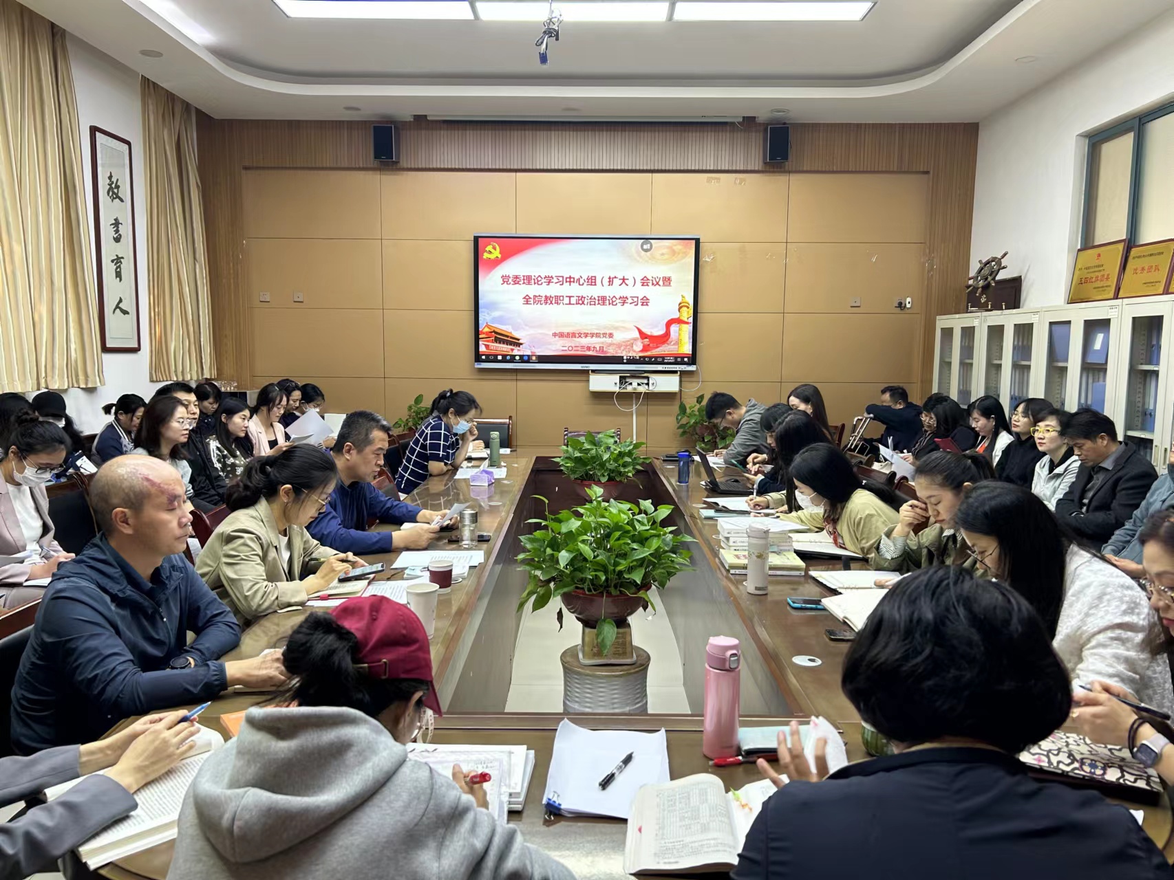 党委在JE126会议室召开党委理论学习中心组(扩大)会暨全体教职工政治理论学习会议,党委理论学习中心组全体成员、全体教职工参加会议。会议由学院党委书记王刚主持。