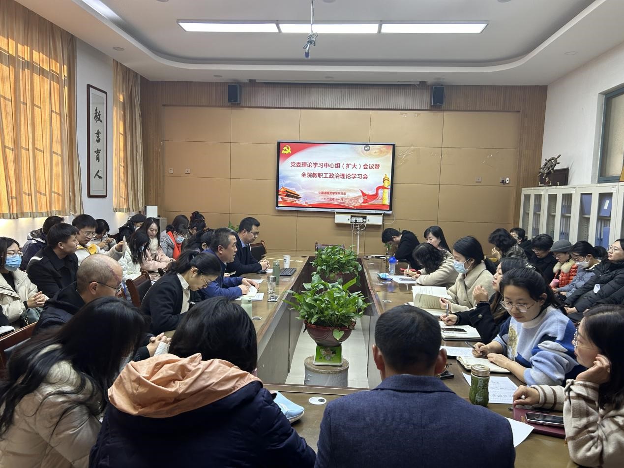党委在JE126会议室召开党委理论学习中心组(扩大)会暨全体教职工政治理论学习会议,学院党委理论学习中心组成员、全体教职工参加会议。会议由学院党委书记王刚主持。