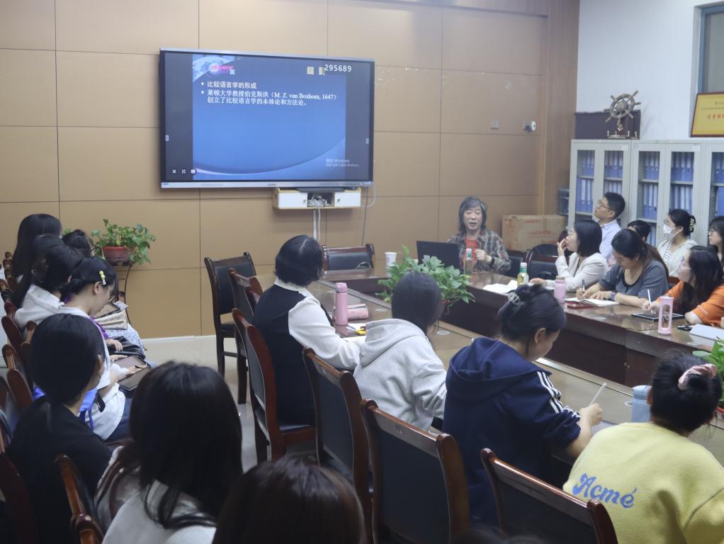 讲座围绕比较语言学的形成和发展、西方语义学的形成和发展、现代语言学的形成和发展三个主题展开。李教授从“教程索绪尔、学术索绪尔、手稿索绪尔、心理索绪尔”四个方面对索绪尔的立体认识入手,提出了逐层考察和群体考察的研究模式。接着,李教授简要介绍了比较语言学在欧洲形成的四个阶段,指出比较语言学成熟于17世纪中期的尼德兰并非偶然,莱顿大学教授伯克斯洪(M. Z. van Boxhorn)在当时荷兰深入探索语言关系和语言起源的氛围下,首创了比较语言学的本体论(斯基泰假说、印欧语系假说)和方法论(历史比较法),是比较语言学史上的里程碑。之后,李教授梳理了西方语义学的形成过程,指出19世纪20年代,德国古典语文学家莱斯格(C.K. Reisig, 1825)创立了语义学或意义科学(Semasiologie)。而莱斯格所在的哈雷大学能够成为催生“语意学”的摇篮,是因为它是当时德国古典学和阐释学的中心。19世纪末,法国语言学家布雷阿尔(M. J. A. Bréal)再造 “心智语义学”(Sémantique)。其专著《语义学探索(意义的科学)》(Essay de Sémantique (science des significations))不仅是19世纪晚期语义学研究的一座丰碑,而且是19世纪与20世纪之交普通语言学研究的指南。李教授还回顾了(美)吉布斯、(俄)亚历山大罗夫、(英)斯马特、(法)格拉塞列、(英)加德纳等西方语义学的代表人物及其学术创新。最后,李教授指出波兰—俄罗斯语言学家博杜恩(Бодуэн де Куртенэ,)早在19世纪70 ~80年代、索绪尔之前就提出了社会-心理语言学理论,创立了现代语言学,区分了语言和言语、语言的静态和动态,提出了语言是一个符号系统,以及语言的类比联想和邻接联想。当代若干语言学分支学科都是他首先提出的。而索绪尔基于各种观点的整合建构了静态语言学。由此可见,群体考察模式可以帮助我们揭开语言学史上的若干不惑之谜。依据以上线索,可以重新描述16世纪到20世纪上半叶的西方语言学史,并且给一些语言学家重新定位。李教授还进行分享了自己的其他论著,研究课题涵盖词类学和句法学、世界语言学史论、当代语言学新理论的追溯以及基于原著的西方隐喻理论研究、语言文化史稽考等。