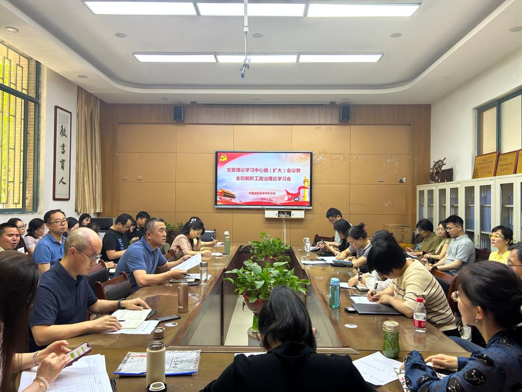 党委在JE126会议室召开党委理论学习中心组(扩大)会暨全体教职工政治理论学习会议,学院党委理论学习中心组成员、全体教职工参加会议。会议由学院党委书记王刚主持。