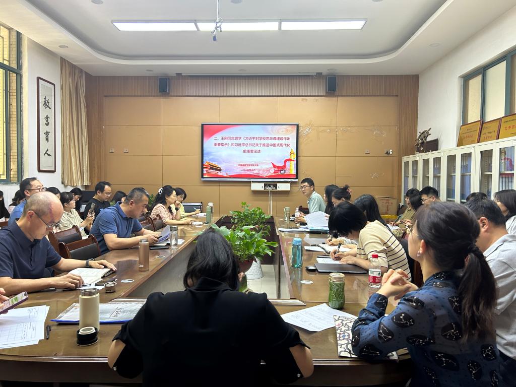 会上,全体教职工集体观看视频《习近平在重庆考察时强调 进一步全面深化改革开放 不断谱写中国式现代化重庆篇章》,认真学习习近平总书记在重庆考察时的重要讲话精神。王刚书记传达习近平总书记对学校思政课建设作出的重要指示和新时代学校思政课建设推进会精神,并领学习近平总书记关于推进中国式现代化的重要论述。董佳同志领学《陕西省教育厅办公室关于我省高校科研诚信典型案件的通报》,杨志飞同志领学《av大平台
