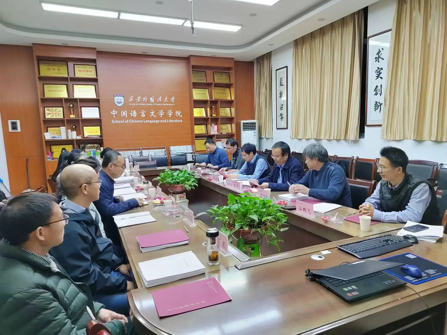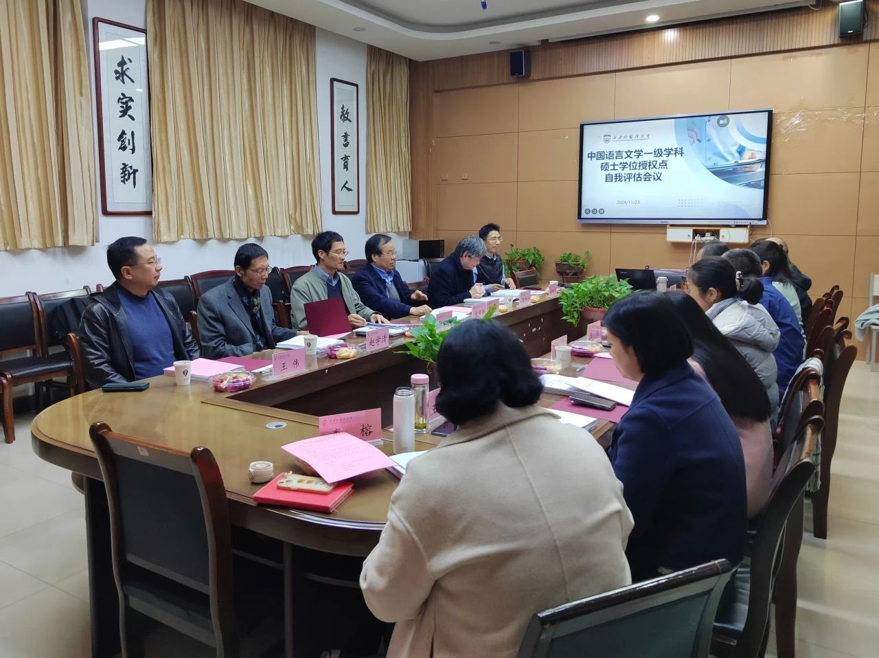举行了中国语言文学一级学科硕士学位授权点及国际中文教育专业学位授权点的自评估专家评审会。陕西师范大学原副校长、国务院学科评议组成员、博士生导师党怀兴教授担任评审专家组组长,专家组成员有首都师范大学研究生院常务副院长、博士生导师孙士聪教授,陕西师范大学文学院院长、博士生导师苏仲乐教授,西北大学文学院院长、博士生导师谷鹏飞教授,陕西师范大学文学院博士生导师赵学清教授,以及陕西师范大学学报编辑部主任、博士生导师王伟教授。此外,学院领导班子成员、各二级学科带头人和研究所所长参加了会议。会议由av大平台