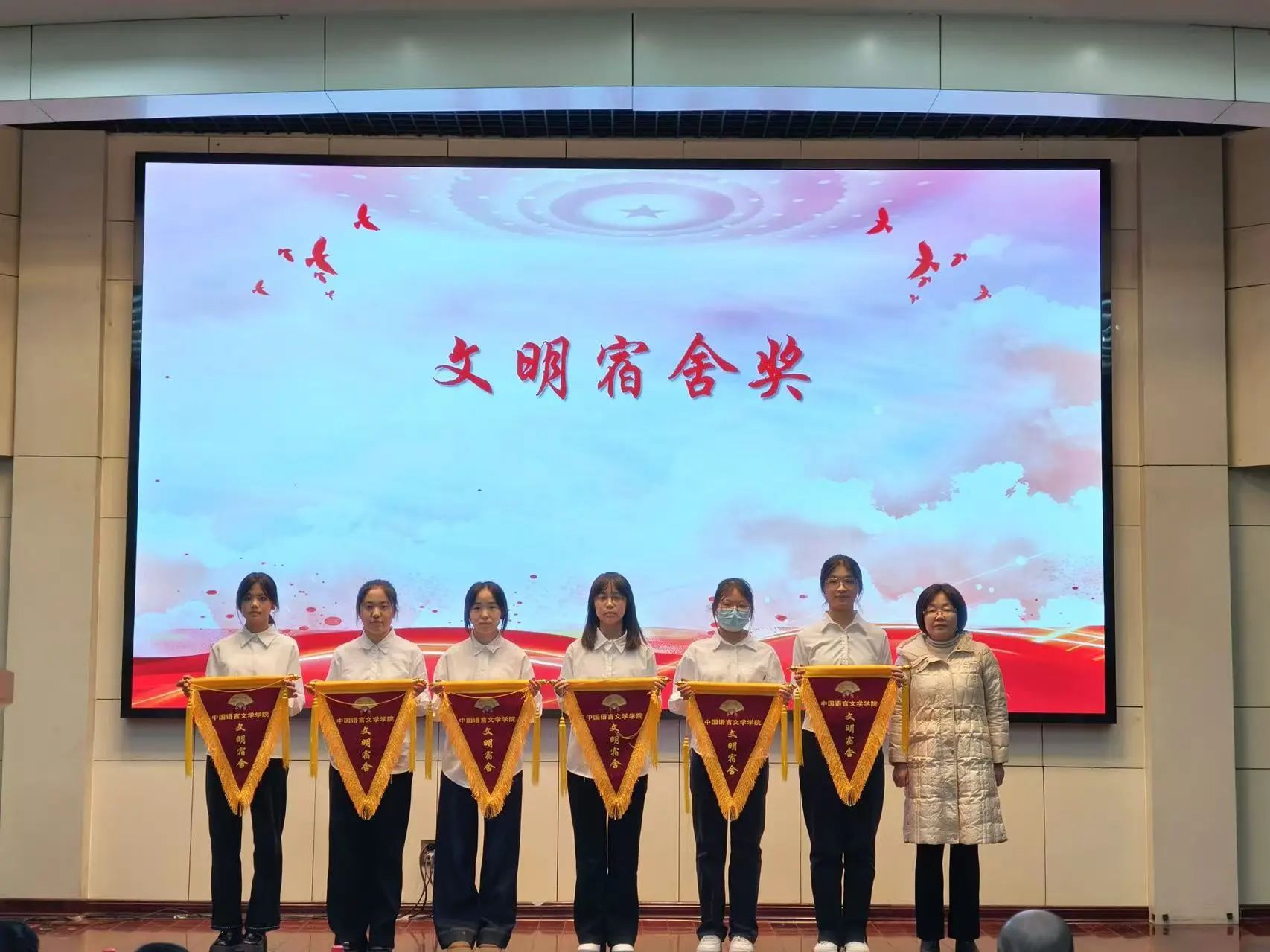 会议最后,院党委书记王娜讲话。她首先向所有获奖同学表示祝贺,同时感谢学院所有老师对同学们的悉心栽培。接着,她总结了学院2024年取得的成绩,并向同学们提出三点要求:一是明确奋斗目标,苦练本领。希望同学们较早明确自己人生的奋斗目标,合理规划生活、学习和工作,认真对待宝贵的校园时光,把汗水挥洒在为理想奋斗的日日夜夜;二是厚植家国情怀,躬身实践。作为新时代青年大学生,主动担负民族复兴重任是使命,希望同学们在学习中积极投身社会实践,用脚步丈量祖国大地,用眼睛发现中国精神,用耳朵倾听人民呼声,用内心感应时代脉搏,学以致用,在实践中找到自己的价值所在;三是学会独立思考,明辨是非。希望每位同学在面对复杂世界时能保持独立思考,做出正确的决断选择。讲话最后,王娜结合习近平总书记对广大青年“立志做有理想、敢担当、能吃苦、肯奋斗的新时代好青年”的重要要求,希望全体中文学子坚定千里之志、保持奋进之姿,脚踏实地、埋头苦干,在新的一年里再创佳绩。