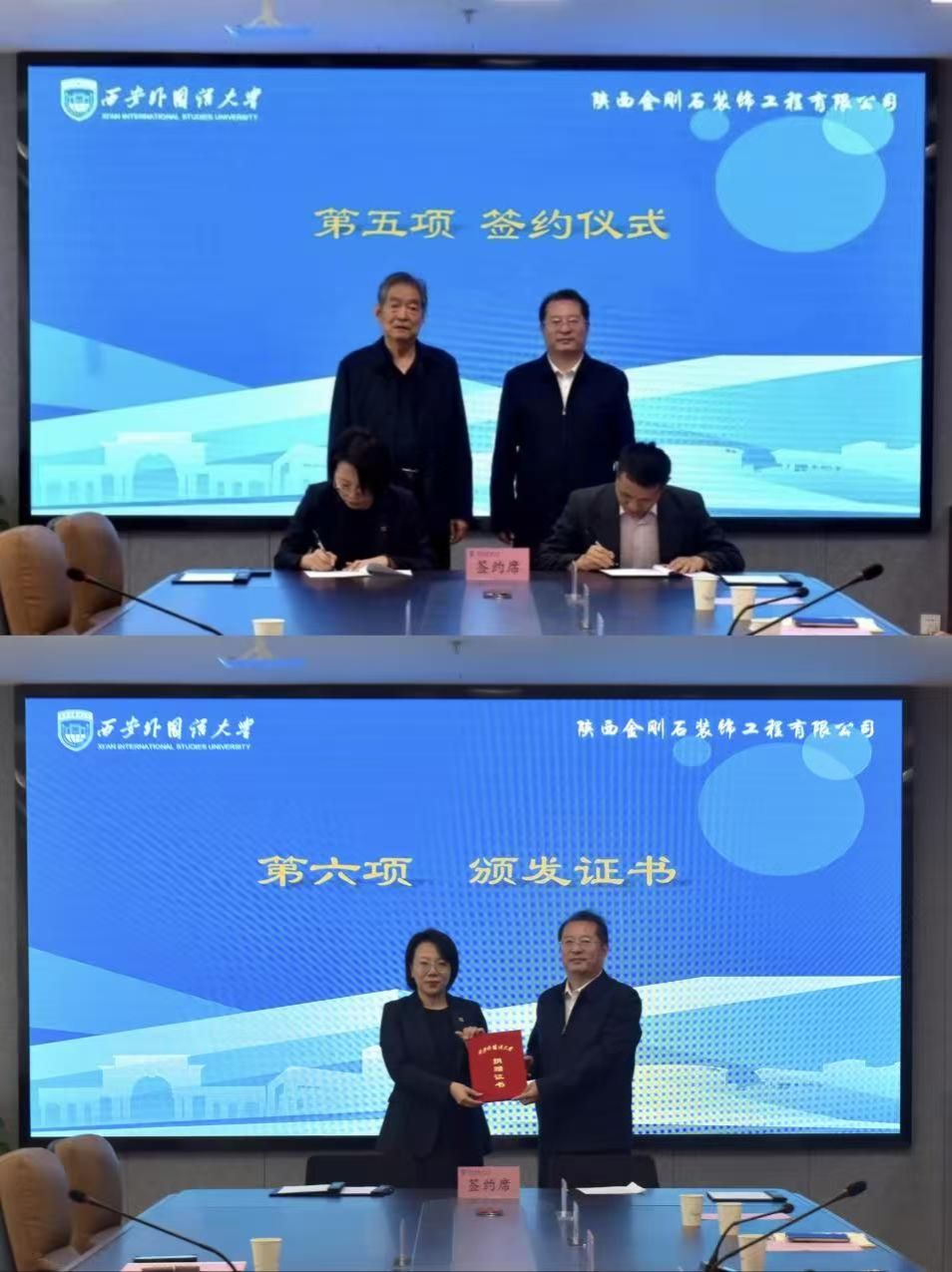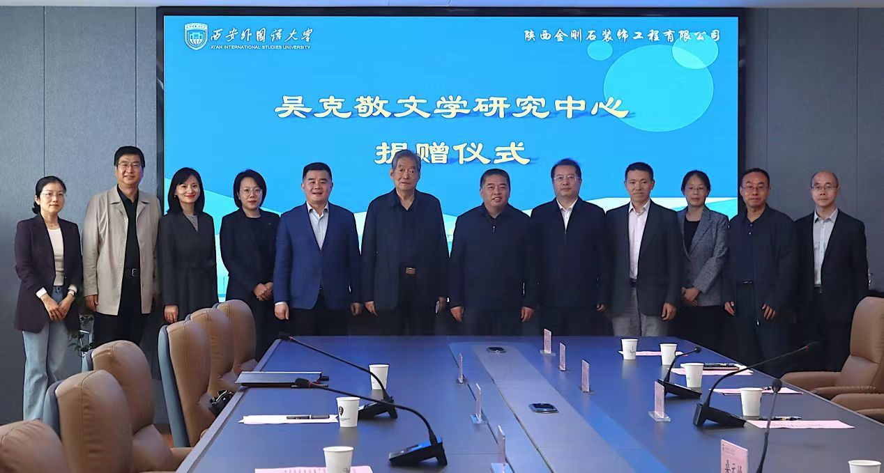 刘振涛在总结讲话中指出,此次捐赠是吴克敬先生文学情怀与陕西金刚石装饰工程有限公司社会责任的双向奔赴。学校将整合学科力量与资源,持续提供有力支持,希望以此中心建设为契机,紧扣“中国文化走出去”战略,聚焦高水平学术成果产出与学生传统文化教育,发挥外语优势,加强制度建设,整合校内外跨学科资源和力量,开展更多高水平系列讲座、工作坊及实践项目,打造具有国际影响力的文化交流平台,为国际化人才培养、文明互鉴与文化传承提供可持续的机制保障。